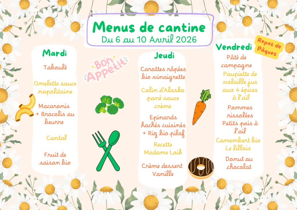 Menus et Plannings Périsco’ Avril 2026
