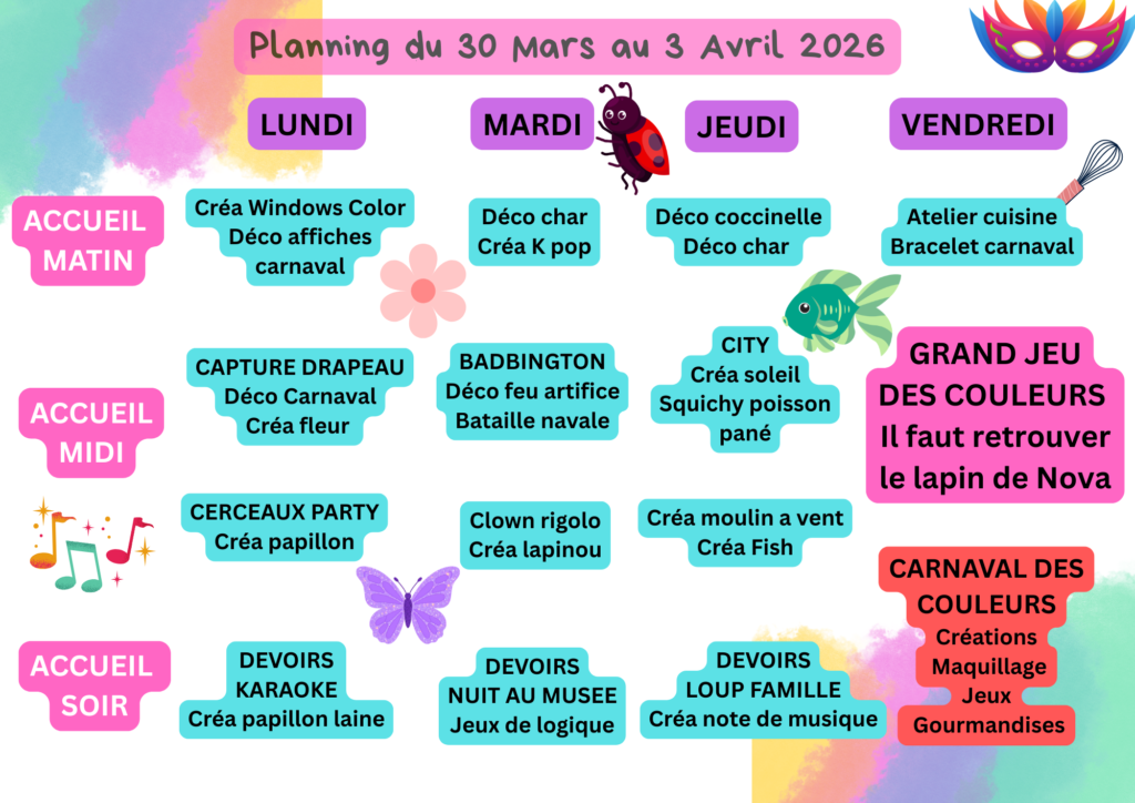 Menus et Plannings Périsco' Mars 2026